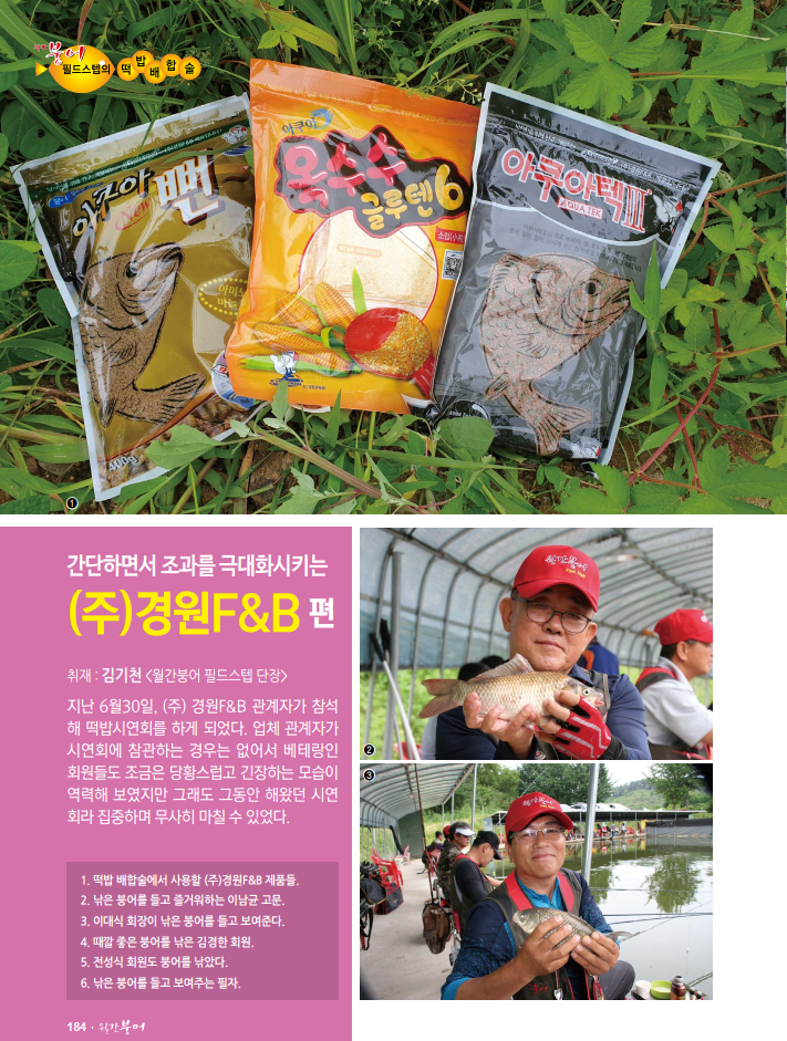 【정보】 월간붕어 8월호 떡밥배합술 기사 페이지 정보 작성자 경원F&B 작성일19-07-25 15:32 조회26,709회 댓글0건 이전글 다음글 목록 본문 월간붕어 8월호 떡밥배합술코너에 경원F&B제품이 소개되었습니다.소개된 배합술을 활용해보시기 바랍니다! 이전글 다음글 목록