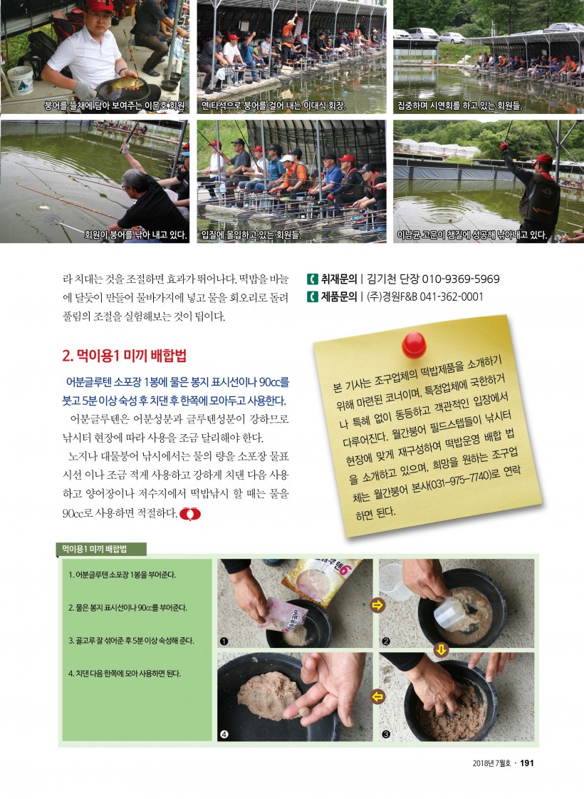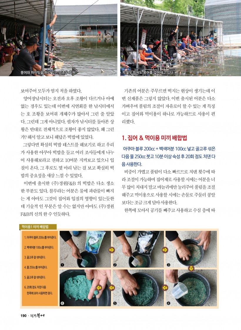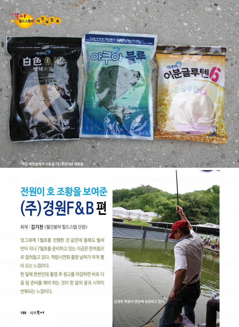 월간붕어 떡밥배합술 코너에 실린 경원F&B 신제품 기사 입니다.