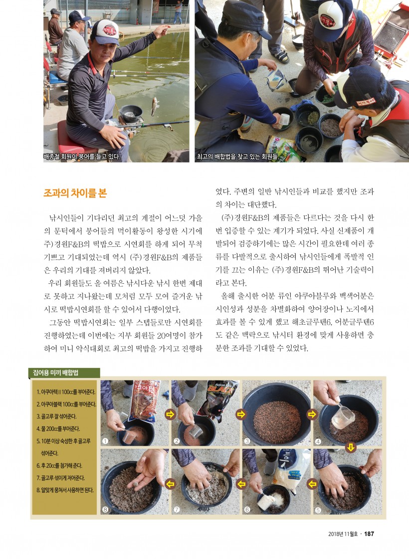 【정보】 월간붕어 11월호 기사 페이지 정보 작성자 경원F&B 작성일18-11-05 08:42 조회27,590회 댓글0건 이전글 다음글 목록 본문 월간붕어 11월호에 실린 떡밥 배합술 기사 입니다.2018년도 신제품들을 활용한 다양한 떡밥 배합술이 소개 되었습니다.많은 활용부탁드립니다.감사합니다. 이전글 다음글 목록